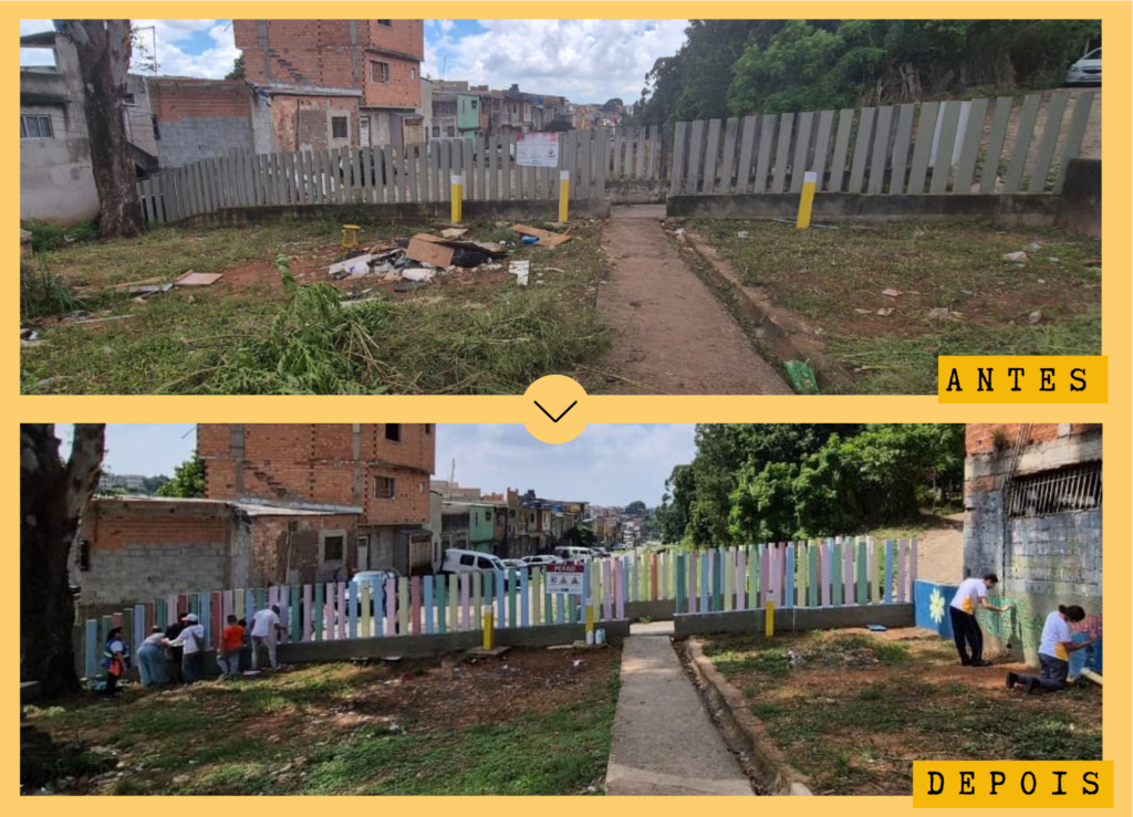 Na inauguração, a presidente do Instituto Gea, Ana Maria Luz, destacou que o contato com a UBS Pro Morar foi um dos pontos de partida para a construção das ações no território. Essa aproximação ajudou a trazer para a conversa as demandas dos moradores e a importância de olhar para aquele espaço a partir do uso cotidiano da comunidade. Antes das obras, a área era marcada por descarte irregular de resíduos, vegetação alta e uma passagem precária usada por quem seguia em direção à escola e ao ponto de ônibus. Cenário que foi mudando aos poucos, com a escuta da comunidade, a mobilização de moradores e instituições locais e as melhorias implantadas na área pelo Projeto Faixa Limpa II e pela Transpetro.