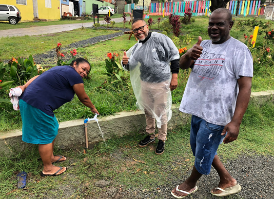 Moradores do Jd. Novo Campos Elíseos ajudando nos ajustes para o cuidado com a biovaleta.